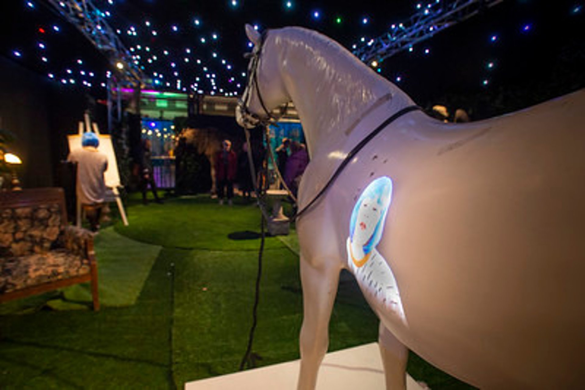 "Otteita" at Finnish National Theater was an immersive performance where the audience had space, power, and 1200 square meters of freedom of choice. The performance took place simultaneously in different spaces and the audience experienced it at their own pace and multisensoric way. The performance never repeated itself entirely the same because the viewers could influence their own experience through their choices. Viewers could decide the level of their participation themselves. This stage production, utilizing digital theater and artificial intelligence possibilities, also expanded onto the internet, creating a parallel reality of the performance that could be experienced as an independent part.