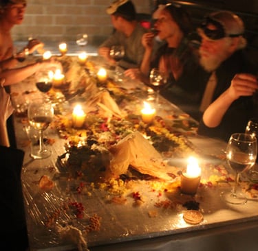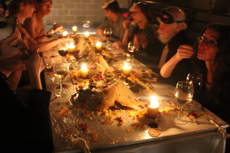 Premiered in 2013 as part of Theorems, Proofs, Rebuttals, and Propositions: A Conference of Theoretical Theater in New York, Symposium is the first installment in Reality Research Center’s Platonic trilogy. It was followed by Plato’s Cave (Copenhagen, 2016), which sought truth, and Plato’s Republic (Helsinki, 2017), which investigated the good. Originally conceived as part of Utopian Reality (2012–2013), a research project by Reality Research Center. The project sought to develop utopian artistic practices capable of entering everyday life — not as escapism, but as proposals for real, lived transformation. Mysteries of Love — a series exploring ancient philosophy as a living source for contemporary embodied inquiry.